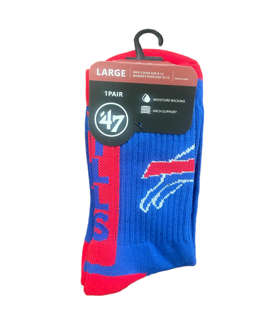 Buffalo Pro Football Socks Adult Team Logo and Colors Large Crew Sport Socks Footwear for Men and Women Game Day Apparel