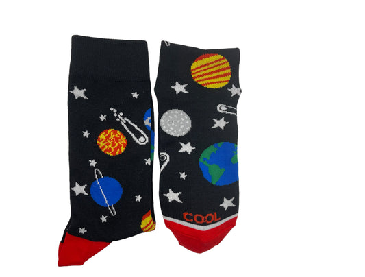 Orbit Outter Space NASA Cartoon Socks, Fun Novelty Unisex 360 Degree Artwork Character Designed Crew Socks