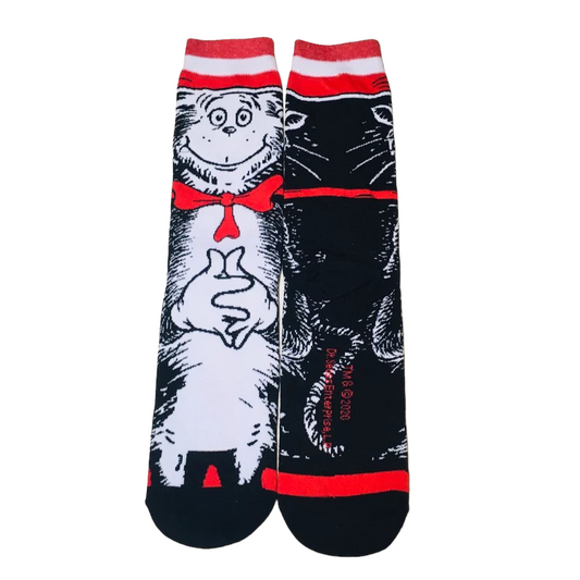 Cat in a Hat, Cartoon Socks Womens & Mens Fun Novelty Crew Character 360 Degree Artwork Designed Socks