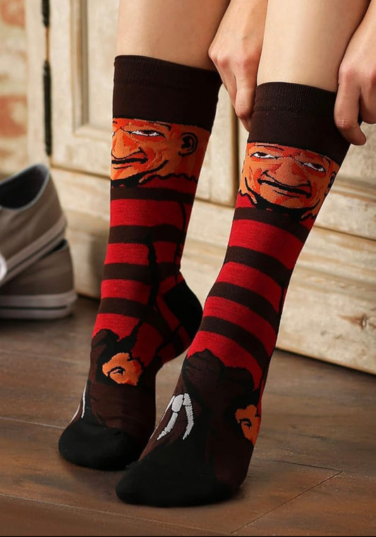Freddy Kruger Nightmare on Elm Street Horror Socks, Fun Novelty Unisex 360 Degree Artwork Character Designed Crew Socks