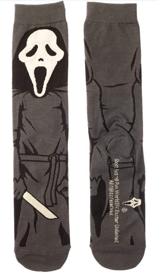 Scream Ghost Face Cartoon Socks, Fun Novelty Unisex 360 Degree Artwork Character Designed Crew Socks